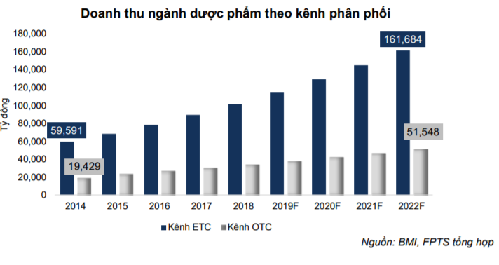 Tại thị trường dược Việt Nam, kênh phân phối chính là hệ thống các bệnh viện (kênh ETC) chiếm khoảng 75%, 25% còn lại thuốc được bán lẻ ở hệ thống quầy thuốc (kênh OTC). Theo dự báo của tổ chức BMI, doanh thu kênh OTC vẫn sẽ tăng về giá trị nhưng tốc độ tăng trưởng sẽ giảm dần, do: (1) bảo hiểm y tế toàn dân thúc đẩy chi tiêu thuốc cho kênh ETC sẽ chiếm chủ yếu, (2) ý thức bảo vệ sức khỏe của người dân được nâng cao sẽ thay đổi thói quen mua thuốc toa cũ, tự chữa bệnh,... (3) hệ thống y tế được nâng cấp tốt để phục vụ người dân.